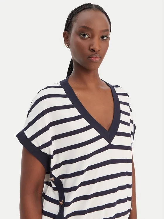PULL STRIPES ECRU/BLAUW