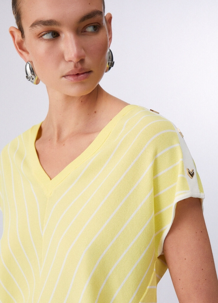 PULL KM STRIPES ECRU/GEEL